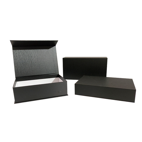 Lüks kişiselleştirilmiş manyetik siyah takı ve giyim ambalaj çevre dostu özel hediye kutusu kabartma biyo-bozunur geri dönüştürülebilir
